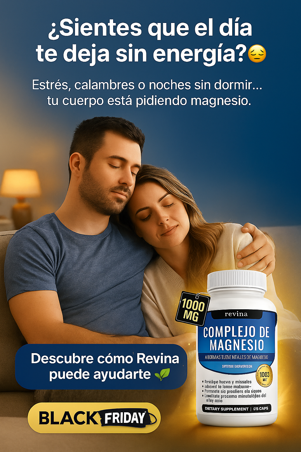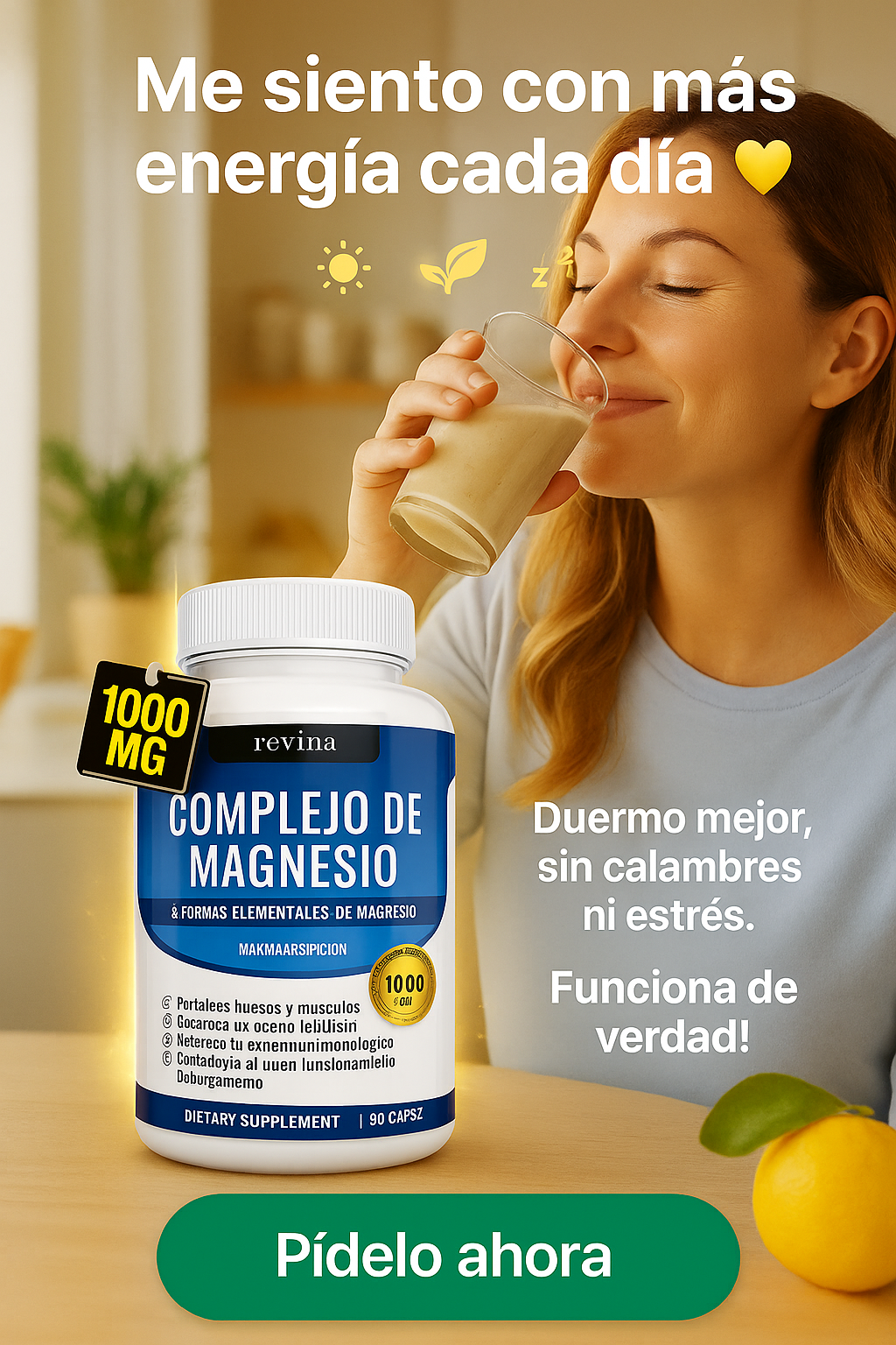 Estrés, preocupación, mente acelerada = cuerpo que no descansa. El magnesio ayuda a relajar el sistema nervioso, bajar la tensión muscular y favorecer la producción y regulación natural de melatonina, la hormona del sueño. Tomar Revina puede ayudarte a conciliar el sueño más rápido, dormir más tranquilo y despertar renovado en vez de roto.
